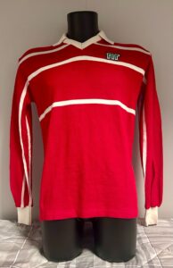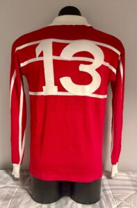 E’ un modello invernale a maniche lunghe prodotto dalla Ennerre ed è di colore rosso con tre sottili strisce orizzontali bianche sia nella parte anteriore che in quella posteriore. Il colletto e i polsini sono di colore bianco così come il numero 13 cucito alla maglia.