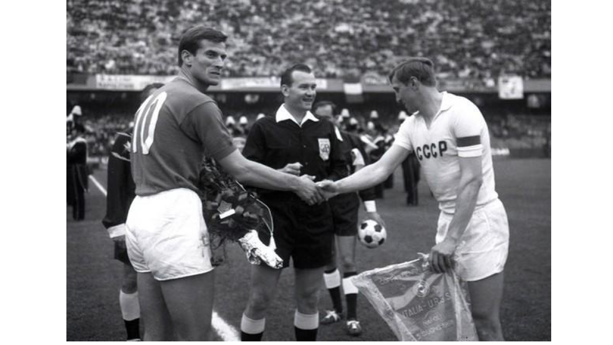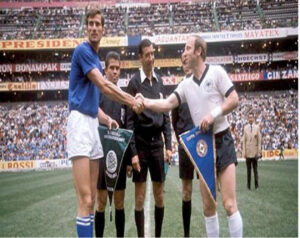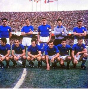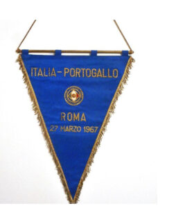 Dai mondiali della vergogna del 1966 al secondo posto raggiunto nell’edizione del 1970 ai campionati del Mondo, passando attraverso il titolo di Campioni d’Europa conquistato nel 1968. Per i gagliardetti, dell’Italia dal 1967 al 1970, tutto resta invariato. Si utilizzano, infatti, esemplari triangolari con passanti praticamente analoghi a quelli utilizzati nel quadriennio precedente che riportavano lo stemma della FIGC ed i dettagli dell’incontro i sopra e sotto il simbolo della federazione.