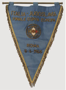 La curiosità di questi anni è che la Federazione diversifica la produzione dei vari gagliardetti. Oltre a quelli che erano oggetto di scambio in campo, ne venivano realizzato ulteriori che la FIGC, con ogni probabilità, donava agli azzurri. Tra questi il gagliardetto della finale della Coppa Europa attualmente esposto a Coverciano e quelli della spedizione a Messico 1970. Nel primo gagliardetto, abbastanza più piccolo rispetto all’esemplare consegnato all’URSS, viene utilizzata la denominazione “Coppa Europa” mentre nell’altro si legge, nel lato superiore, “Coppa Henry Delaunay” e nella riga sottostante le indicazione della partita. In merito agli esemplari dei mondiali messicani, i gagliardetti vennero realizzati postumi poiché su tutti compare l’intestazione completa della partita. Fatto questo non possibile per le gare successive al girone ad eliminazione come attestato dalle foto seguenti. In quelli delle gare del girone eliminatorio è invece sempre presente la dicitura “Coppa Rimet” in prima riga mentre in seconda trova posto il nominativo degli avversari.