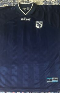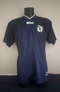 Si tratta della maglia utilizzata nella prima metà della stagione 2004/05, prodotta dalla locale azienda Royal Trophy. Molto bella e semplice, con colletto a “Vatteru con righino bianco ed integralmente del tradizionale colore blufoncè. La maglia reca sulla parte di destra lo stemma tipico con l’aquilotto, simbolo del club. A partire dal girone di ritorno arriverà poi sulle casacche aquilotte lo sponsor commerciale “Progetti&Finanza”.