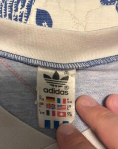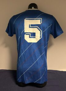 La maglia è uno dei classici modelli Adidas di metà anni Ottanta. Presenta delle strisce oblique di colore rosso, alternate ad altre di colore bianco e le immancabili tre strisce sulle spalle che qui sono di colore bianco. Ricordiamo che questo modello fu utilizzato da tantissimi club italiani (ad esempio Ancona, Bari, Verona, Cavese, Varese, Empoli, Sanremese) e anche nazionali (Jugoslavia, USA, Portogallo, Islanda per citarne alcune).