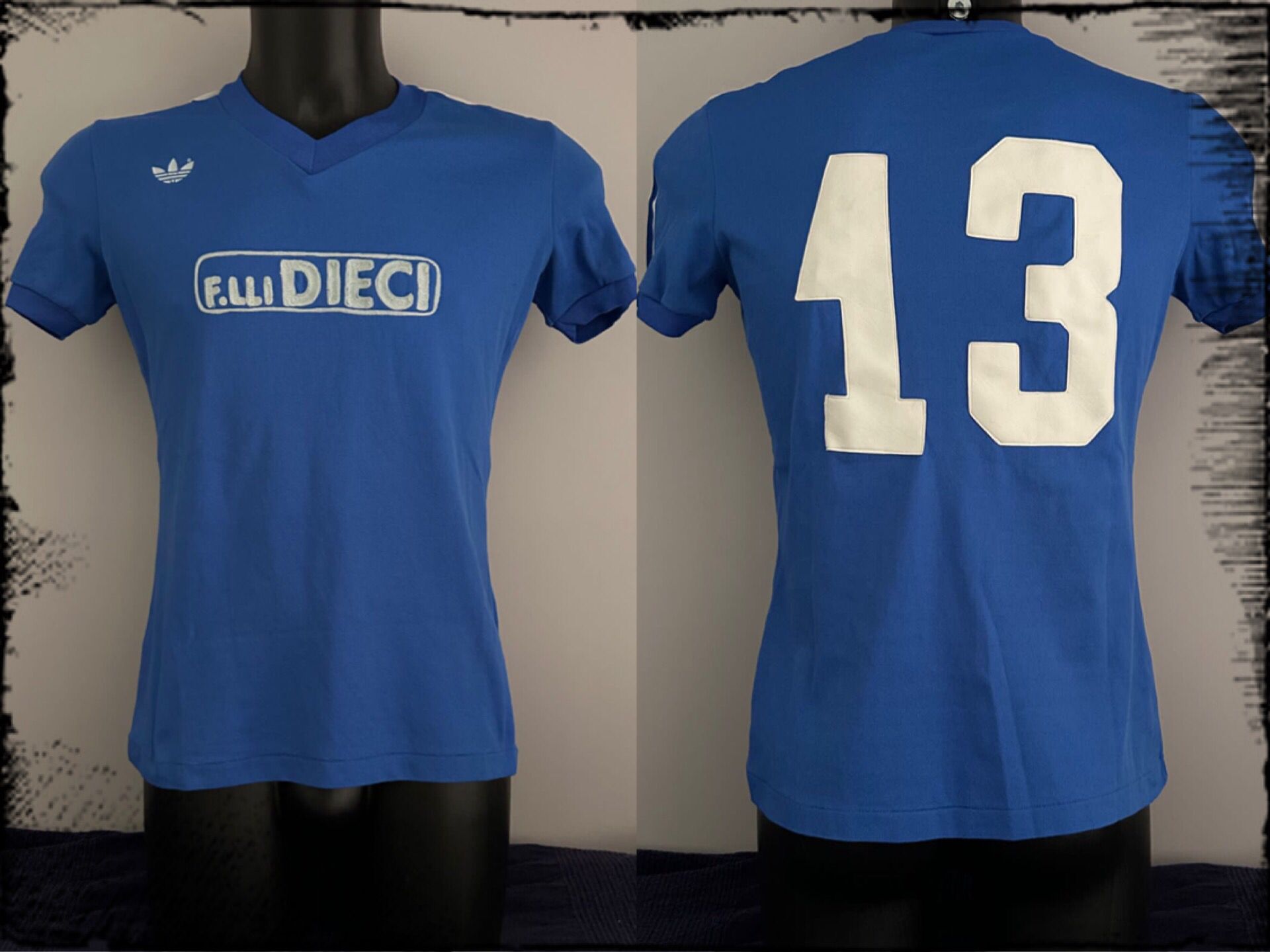 La maglia è un modello da trasferta bellissimo quanto semplice: si tratta di una versione elasticizzata Adidas Ventex con le caratteristiche strisce sulle spalle di colore bianco e blu. Al centro della maglia troviamo il primo sponsor storico commerciale del club bianconero, Fratelli Dieci, storica azienda a conduzione familiare produttrice di macchine edili ed agricole e prefabbricati, che sottoscrisse con il presidente Edmeo Lugaresi un accordo di sponsorizzazione con il club di durata triennale per circa 650 milioni lire, accordo poi prorogato di altri due anni. Lo sponsor in quei primi anni era ricamato all’interno della maglia.