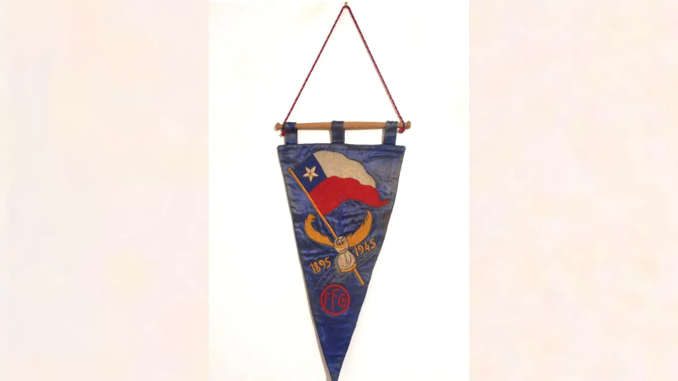 Correva il 1945 e mentre in Europa volgeva al termine la Seconda Guerra Mondiale, in Cile ebbero modo di pensare a come festeggiare il cinqunatesimo anniversario della costituzione. Un gagliardetto molto differente rispetto gli standard sudamericani in quanto completamente ricamato a mano e davvero curato nei dettagli grafici. La grande bandiera cilena è un dettaglio che resterà ancora presente per diversi anni sui gagliardetti della nazionale cilena, “La Roja”.