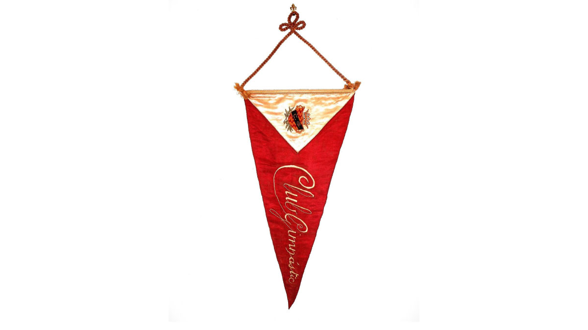 Il gagliardetto è un esemplare verosimilmente risalente agli anni Trenta deducibile anche dalla denominazione Club Gimnastic ricamata sul gagliardetto derivante dalla denominazione Gimnástic Futbol Club che la squadra adottò nel 1934. Questo esemplare ha la curiosità della scritta societaria con andamento verticale. Questa tipologia di gagliardetti non era unica poiché altre società spagnole, tra gli anni Venti e Trenta, vi fecero ricorso come ad esempio l’Alfonso XIII Foot-Ball Club, squadra antesignana del ben più noto Real Club Deportivo Mallorca.