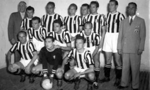 Nella stagione 1950/1951 campione d’Italia si era laureato il Milan, i bianconeri arrivarono solo terzi, ma accettarono di partecipare al torneo “mondiale”. Era, comunque, un’ottima squadra, che aveva vinto l’anno prima e avrebbe rivinto la stagione successiva a quella di svolgimento del torneo sudamericano.La Juventus era guidata in panchina dall’inglese Jesse Carver, che fu il primo ad applicare il gioco a zona nel campionato italiano, vincendo subito il titolo con i bianconeri, che ruotavano intorno all’estro di Giampiero Boniperti, giovandosi anche di campioni come Giovanni Viola in porta, di Carlo Parola, dei danesi Karl e John Hansen, dell’estro funambolico di Ermes Muccinelli e della praticità offensiva dell’altro danese, Karl Aage Praest.