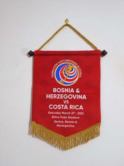 Il gagliardetto presentato oggi, interamente in rosso, riporta lo stemma ricamato della federazione con alla base i dettagli dell’incontro dell’amichevole giocata lo scorso 2 giugno contro la rappresentativa della Bosnia – Erzegovina.