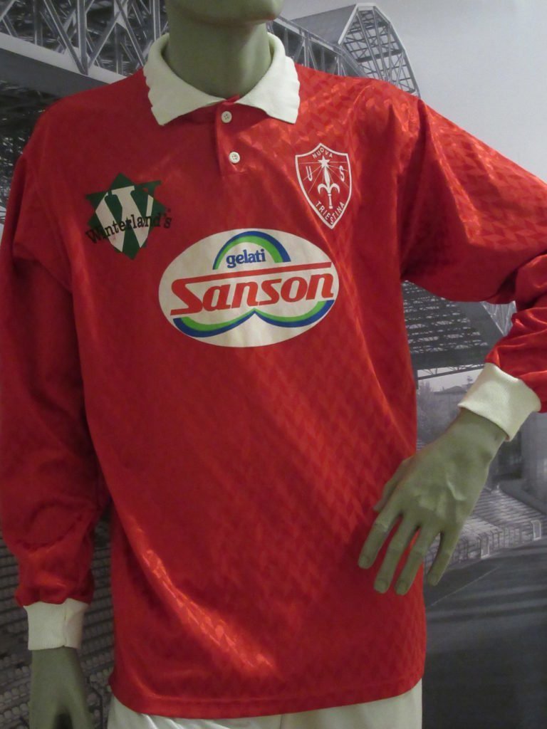 Esatto, la collezione … “Divento “collezionista seriale” nel 2012, quando a seguito della rottura del tendine d’Achille mi ritrovo per parecchi mesi a casa e pian pianino inizio a sistemare la cinquantina di maglie che avevo all’epoca. Nel farlo mi resi conto che c’erano dei “buchi” e cercai quindi di “riempirli” cercando di trovare almeno una maglia suddivisa per colore e annata. Ora ho in collezione oltre 200 maglie, tra cui due pezzi di assoluto valore: le maglie di Giuseppe Fontana. Quella del 1974/75 con lo scudetto bianco nella stagione dello storico derby con il Ponziana con oltre 20.000 spettatori, e quella del 1978/79 disegnata dallo sponsor tecnico inglese Admiral, uno dei brand con più alta cura dei particolari e dai tessuti ricercati”.