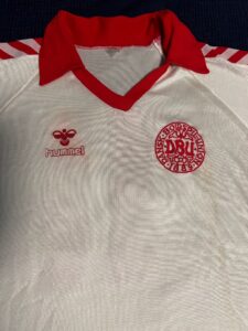 Dopo la maglia di Laudrup, questa settimana concludiamo la fase delle nazionali con un’altra rara ed iconica maglia della Danimarca nelle qualificazioni ai Mondiali dell’82.