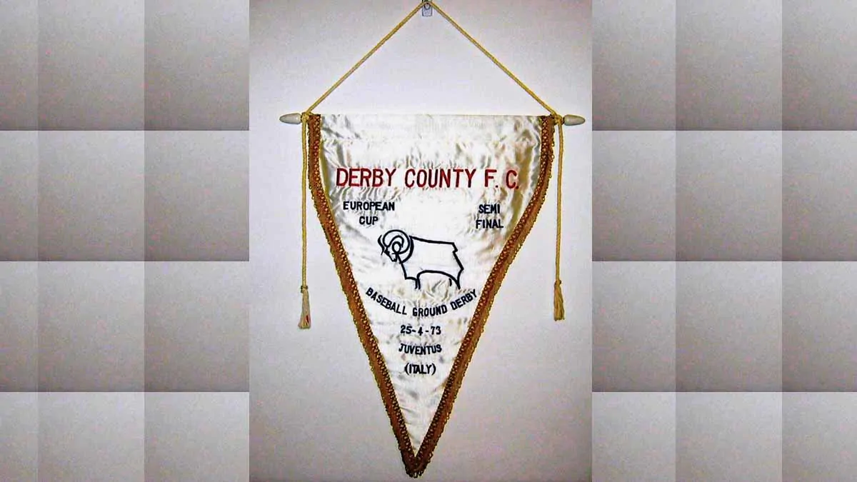 La prima vittoria di rilievo il Derby l’ottenne nella Coppa d’Inghilterra che conquistò alla ripresa delle attività sportive dopo la Seconda guerra mondiale. Il suo periodo d’oro fu però negli anni Settanta e quei successi furono merito del grande manager Brian Clough che, prima di fare la storia nel Nottingham Forest, portò gli “arieti” dalla seconda divisione alla vittoria nel campionato nel 1972 ed a competere nella Coppa di Campioni dove raggiunse l’obiettivo, nel 1973, della semifinale disputata contro la Juventus. Proprio di quella semifinale, vinta dalla Juve, ricordiamo oggi, con il suo gagliardetto, la storia.