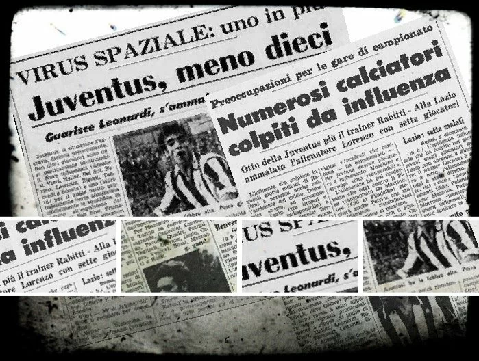 “L’influenza che colpisce in questi giorni milioni di italiani è arrivata anche nell’ambiente del calcio. […] Ieri, purtroppo, gli effetti dell’influenza «spaziale» si sono fatti sentire. La Juventus, al momento attuale, è la più danneggiata. Otto bianconeri, reduci dalla vittoriosa trasferta di San Siro contro il Milan, hanno avvertito i sintomi del malessere (mal di testa, brividi, lieve febbre) per cui si sono messi a letto oppure sono rimasti prudenzialmente a riposo. Si tratta di Vieri, Haller, Leonardi, Roveta, Tancredi, Leoncini, Zigoni e Anastasi. Vieri è quello che desta le maggiori preoccupazioni: stamane aveva 38,2 di febbre, nel pomeriggio le sue condizioni erano stazionarie. È stato visitato dal dott. Della Neve, che gli ha ordinato le cure e riposo per almeno quattro giorni. Difficilmente l’ex sampdoriano potrà essere in campo nella trasferta di Brescia. Haller, Leonardi, Roveta e Tancredi sono rimasti “a letto con alcune linee di febbre: tutti e quattro sperano di guarire in tempo per completare la preparazione. Leoncini, Zigoni e Anastasi, infine, si sono presentati ieri mattina al “Combi” dicendo però che avrebbero preferito riposare avvertendo anch’essi sintomi dell’influenza. L’allenatore Rabitti, naturalmente, li ha subito rimandati a casa dove più tardi avrebbero ricevuto la visita del medico Della Neve. Anche lo stesso trainer è rimasto contagiato dall’influenza. Il tecnico bianconero è riuscito ugualmente a dirigere l’allenamento dei pochi giocatori presentatisi in campo, fra cui Del Sol. Ha poi dichiarato: «Anch’io ho un po’ di febbre ma non me la sentivo di lasciare la squadra proprio ora che stiamo assaporando le prime soddisfazioni, per cui occorre la massima concentrazione. Purtroppo mi sono trovato con pochissimi giocatori: il medico mi ha tranquillizzato nel senso che gli attuali influenzati dovrebbero essere recuperabili. Ora, scusatemi, ma devo proprio correre a casa e mettermi a letto” (Cit. La Stampa, 10 dicembre 1969).