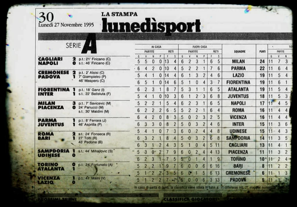 GLIEROIDELCALCIO.COM (Antonio Capotosto) – Domenica 26 novembre 1995 andava in scena l’undicesima giornata. All’Olimpico la Roma superava 2-1 i ‘Galletti’ con Fonseca e Totti: per il diciannovenne Francesco il Bari significava così la prima squadra alla quale aveva segnato due volte.