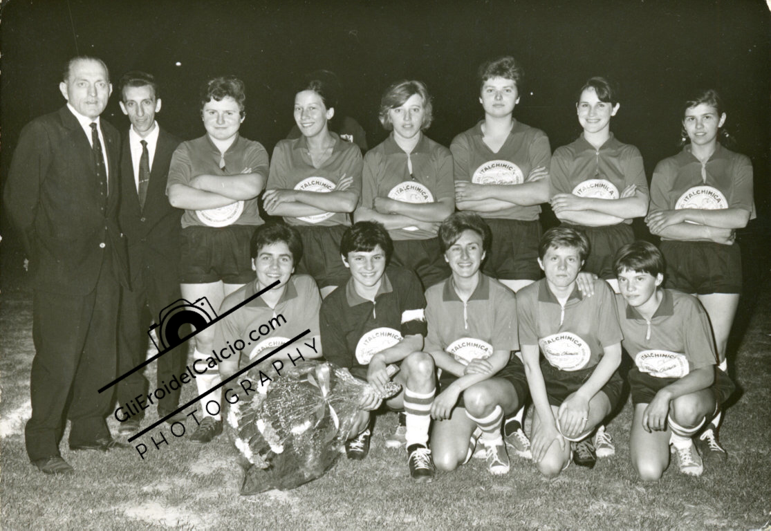 GLIEROIDELCALCIO.COM (Giovanni Di Salvo) – Ultimo giorno del Carnevale dell’anno 1955. Un gruppo di ragazze di Cormons, cittadina in provincia di Gorizia, nel clima goliardico che si respirava decide di calcare il terreno di gioco del campo Comunale per cimentarsi in un incontro di calcio femminile. Le magliette si prendono in prestito dalla locale formazione della Cormonese mentre come scarpe si utilizzano quelle di ginnastica che avevano in casa. La partita si rivelò un successo e così sotto il patrocinio e la guida di Mario Bigot, ex arbitro noto nel comprensorio friulano, nacque la squadra delle Furie Rosse. La compagine iniziò ad essere invitata in giro per il Friuli Venezia Giulia in occasione delle festività o delle sagre locali. Le novelle calciatrici si dividevano in due gruppi per affrontarsi tra di loro (ad esempio il 1° marzo 1960 giocarono Libere contro Romantiche) oppure per misurarsi contro formazioni maschili amatoriali come quella de I figarò Barbirs. Frattanto nella vicina Turriaco sorse un’altra squadra e così, a partire dal 25 aprile 1962, iniziarono le appassionanti sfide contro le Indomite. E nelle fila delle Furie Rosse mosse i primi passi Elena Schiavo, una delle calciatrici più forti negli anni Settanta e grande protagonista sia con la Nazionale che nei club dove ha poi militato.