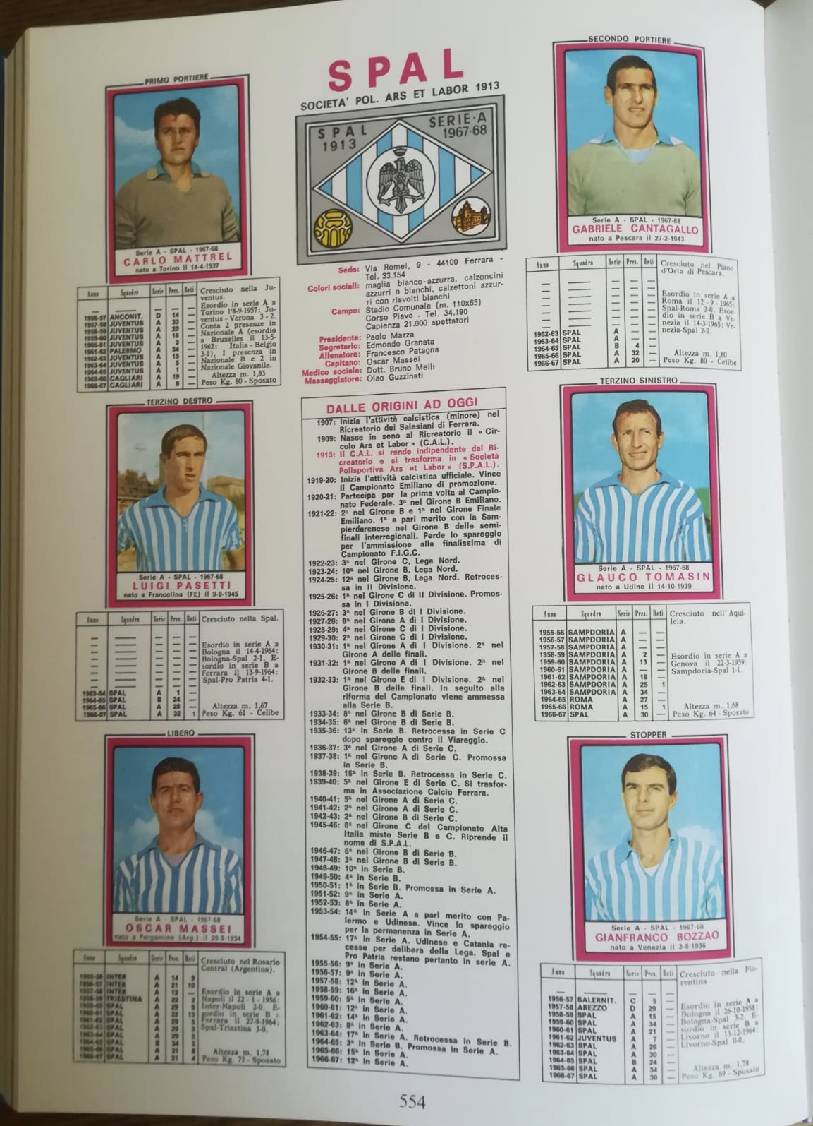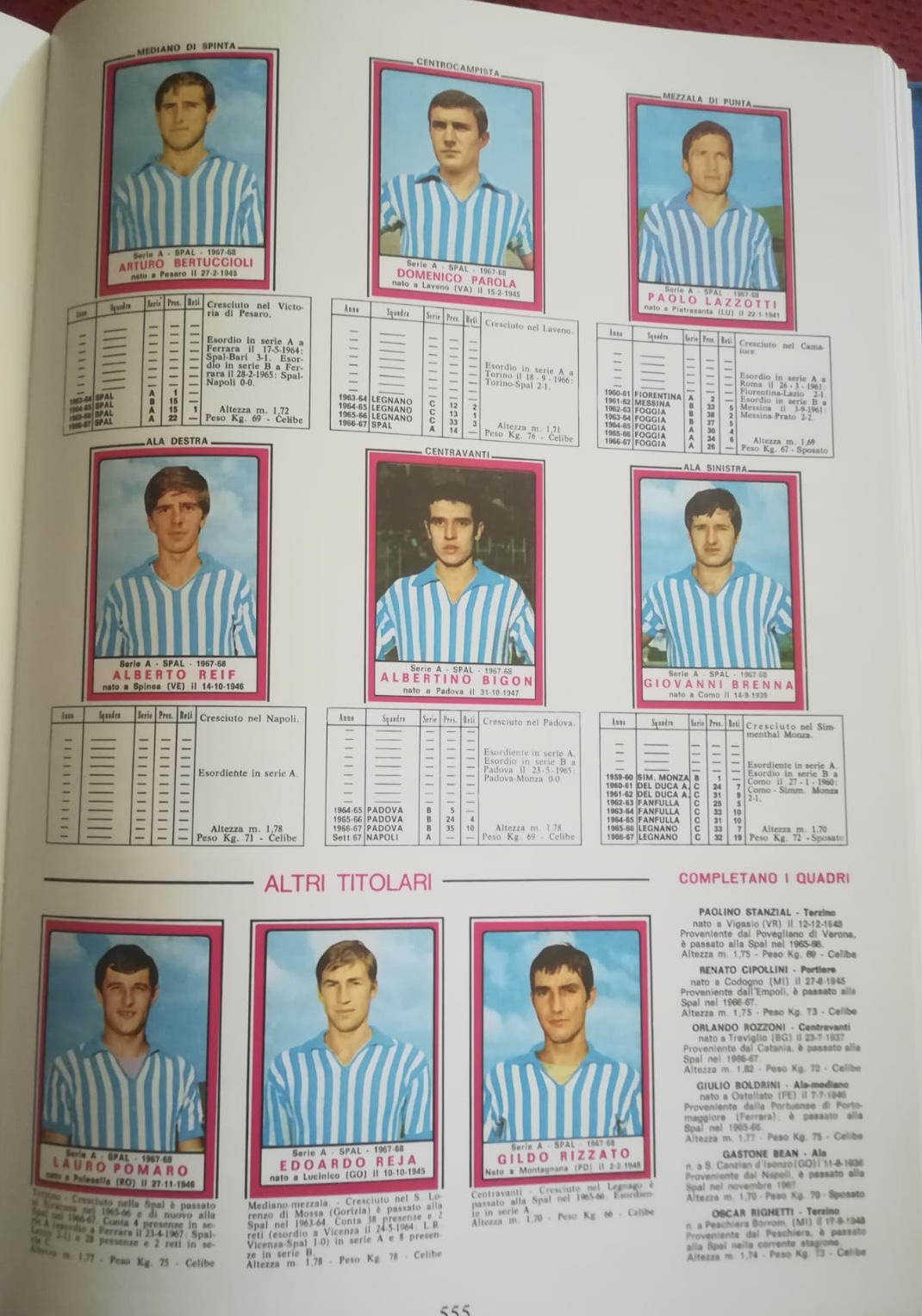 Ovviamente Vendrame non è tra i titolari e quindi non è nemmeno così scontato che lui debba farla. Prendete allora l’album della Panini della stagione 1967-68, ovviamente alle pagine dedicate alla Spal: