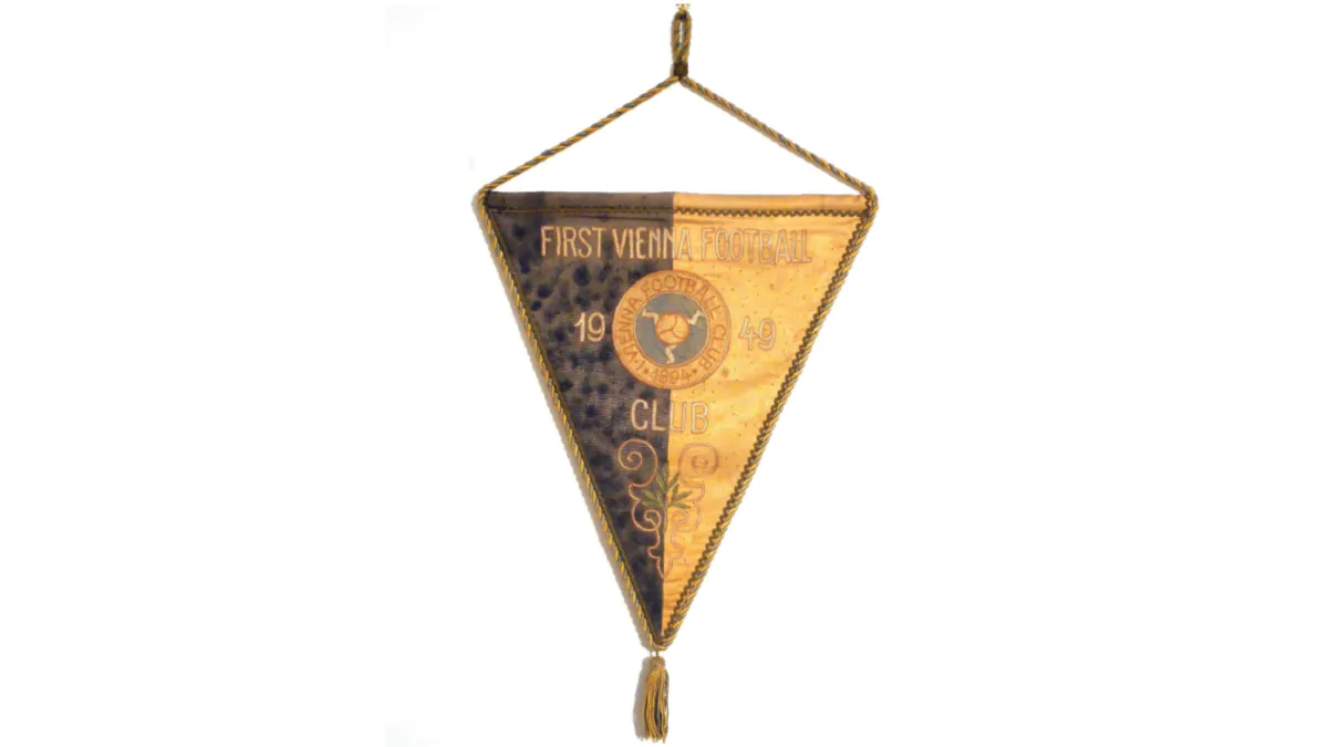 Il gagliardetto odierno, risalente al 1949, è uno splendido ricordo di questa squadra che ha contributo alla crescita del calcio europeo. Esso è in linea, per formato e stile, ad altri gagliardetti del First Vienna che come caratteristiche condivise riportavano lo stemma societario centrale ed i colori giallo e blu. Su di esso spiccavano, inoltre, i ricami della denominazione societaria nonché, ai piedi dello stemma, il particolare del ricamo dell’annata sportiva.