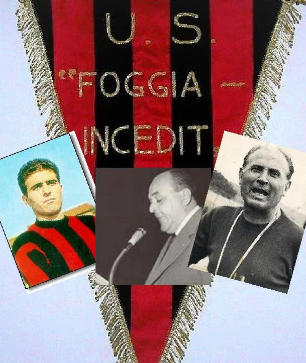 Il presidentissimo, ovvero Domenico ROSA ROSA, Don Mimi per i foggiani, che fu l’artefice della prima storica promozione in A del Foggia conquistata al termine della stagione 1963-1964. Il “mago di Turi”, ovvero Oronzo PUGLIESE che insieme al Presidente ROSA ROSA determinò le sorti del Foggia & Incedit con il culmine raggiunto nella memorabile vittoria contro l’Inter neo campione del mondo del 31 gennaio 1965. Ed infine il bomber, Cosimo NOCERA il massimo realizzatore nella storia del Foggia con 101 reti nei vari campionati disputati con la maglia dei satanelli, oltre a 19 goal messi a segno in Coppa Italia.