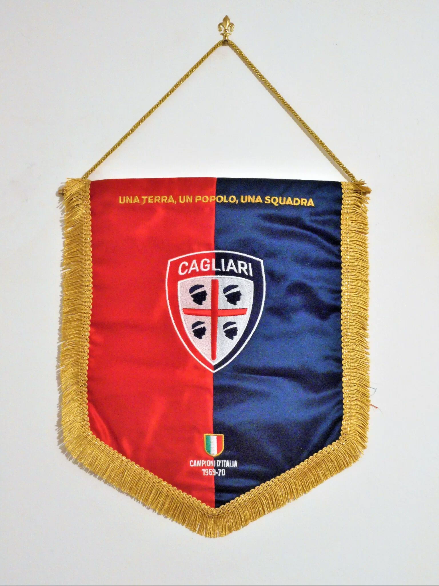 GLIEROIDELCALCIO.COM (Marco Cianfanelli) – Parliamo del gagliardetto del Cagliari, squadra che negli ultimi anni ha iniziato a scambiare, a differenza del recente passato, gagliardetti esclusivamente ricamati arrivando anche ad utilizzare, nell’arco di una stagione, due diverse tipologie di gagliardetti.