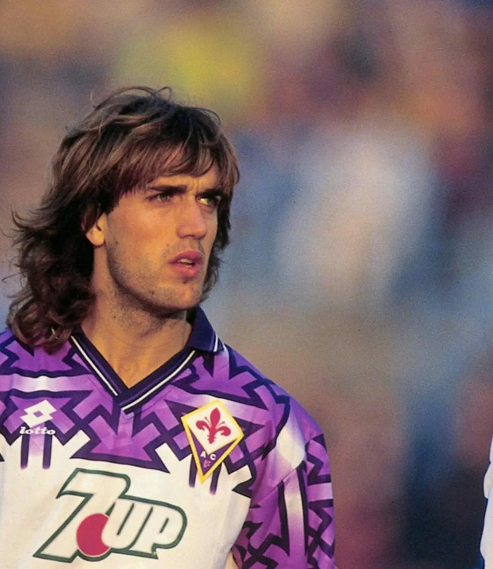 Gabriel Omar Batistuta, nato ad Avellaneda il 1° febbraio 1969, arrivò in Italia nell’estate del 1991 dopo aver segnato 22 reti tra Newell’s Old Boys, River Plate e Boca Junior. Ha giocato 9 anni con la Fiorentina (152 reti), poi 2 stagioni e mezzo a Roma (30 reti) e 6 mesi con l’Inter (2 reti). Nella sua bacheca, un campionato argentino con il Boca, una Coppa Italia con la Fiorentina, uno scudetto con la Roma e 2 Supercoppe italiane (una con la Fiorentina e una con la Roma). È lui ad aver inventato il gesto della mitraglietta per festeggiare le reti in maglia viola.