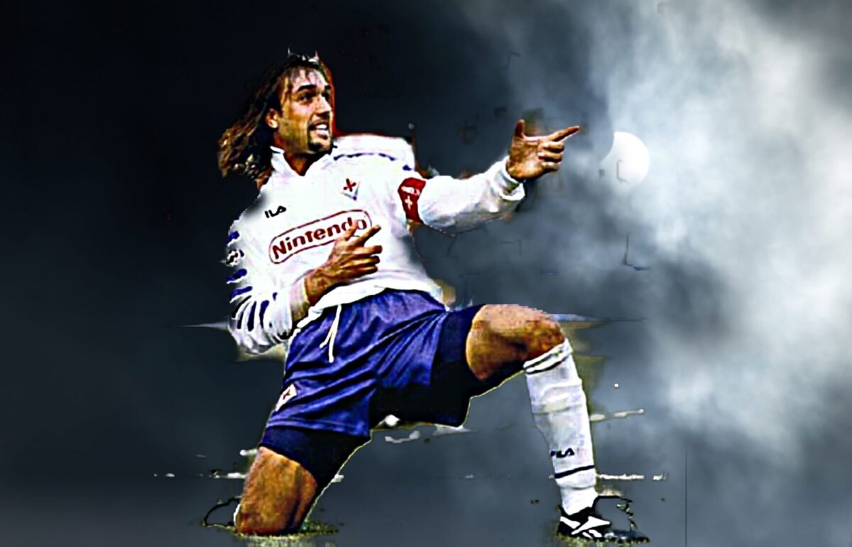 Tredicesimo marcatore di tutti i tempi della serie A con 184 reti siglate (152 Fiorentina, 20 Roma e 2 Inter). Capocannoniere della Serie A con 26 goal nella stagione 1994-1995.