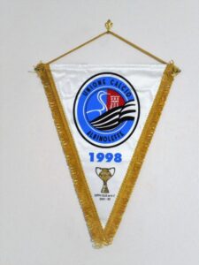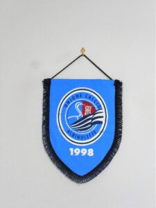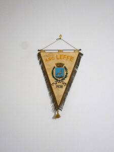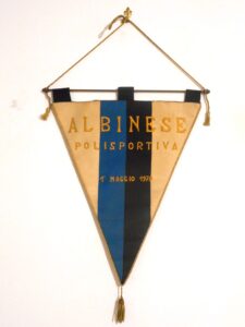 A testimonianza ulteriore dell’attaccamento della squadra al suo territorio, in basso è disegnato un flusso di acqua a significare il fiume Serio e la sua vallata. Relativamente agli stemmi delle due società fondatrici, invece, il Leffe ha utilizzato nel corso degli anni gagliardetti, rigorosamente in campo bianco e sempre contraddistinti dalla presenza dello stemma cittadino. Interessante, invece, lo stemma riportato nei gagliardetti dell’Albinese.