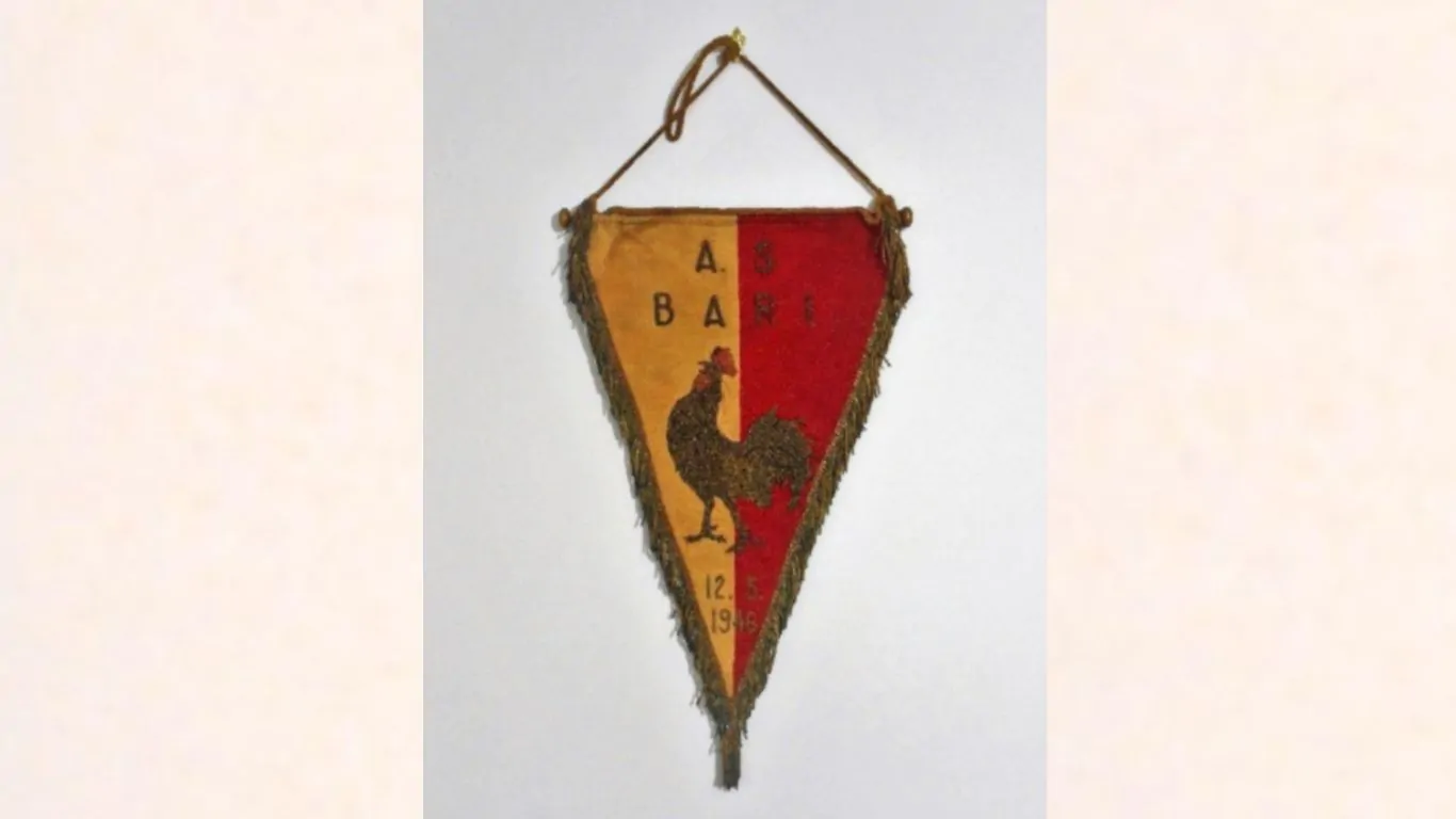 Il primo esempio è un superbo gagliardetto ricamato risalente all’incontro di campionato disputato, nel 1946, tra la squadra pugliese e l’Inter.