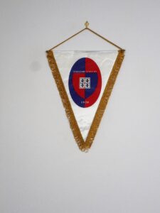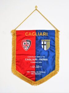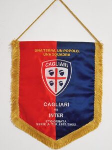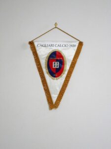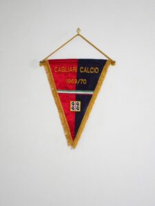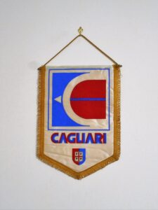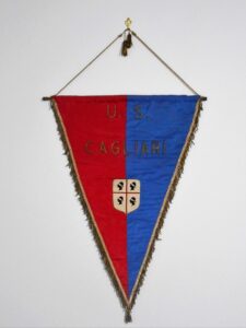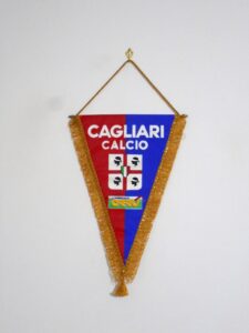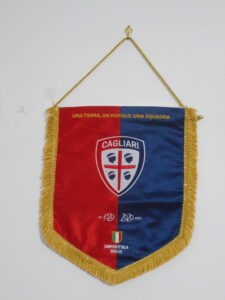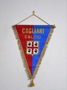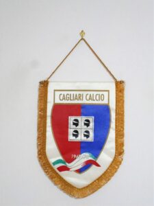 Lo stemma con i quattro mori è il motivo ricorrente nei gagliardetti del Cagliari, insieme ai colori rosso e blu.