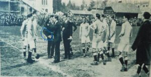 Passò solo pochi giorni dalla sfida con la Francia alla partita giocata con la Svizzera il 6 marzo 1921. La foto che immortala gli azzurri mostra ancora una volta presenti tra loro i dirigenti della FIGC. Ancora una volta l’ex Capitano Calì sostiene il labaro tricolore dalle forme bizzarre ed al suo fianco il nuovo Presidente della FIGC, l’Avv. Bozino, che aveva avvicendato Mauro alla guida dei vertici del calcio nazionale.