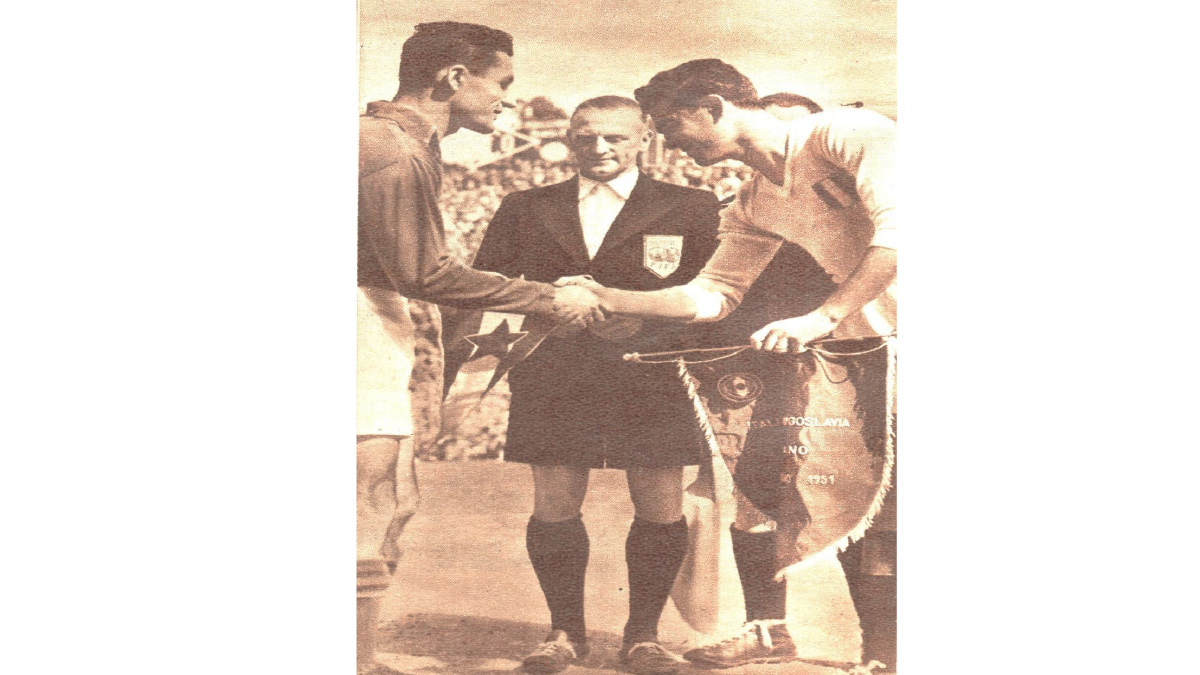Nel dettaglio nel 1951, nel corso delle quattro partite disputate contro Portogallo, Jugoslavia, Francia, Svezia e Svizzera fu usato un gagliardetto a scudo internamente azzurro che sfoggiava sulla fronte lo stemma della FIGC ed insieme il ricamo dei dettagli della partita. Un’altra considerazione merita il fatto che, nell’alveo della tradizione avviata negli anni Quaranta, i gagliardetti vengono portati sin dall’ingresso in campo dal capitano azzurro e la cerimonia dei saluti non è più quella pomposa degli anni Trenta con dirigenti delle rispettive federazioni sfidanti coinvolti ma soltanto, e giustamente, una questione tra capitani.