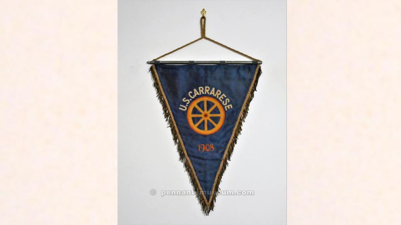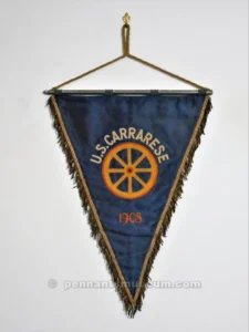 Circa i gagliardetti carraresi, mentre negli anni Sessanta erano finemente ricamati, negli anni Settanta e Ottanta, si presentano in campo azzurro con stemma al centro in giallo costituito da una ruota al cui interno era riportata la denominazione US CARRARESE – P. BINELLI.