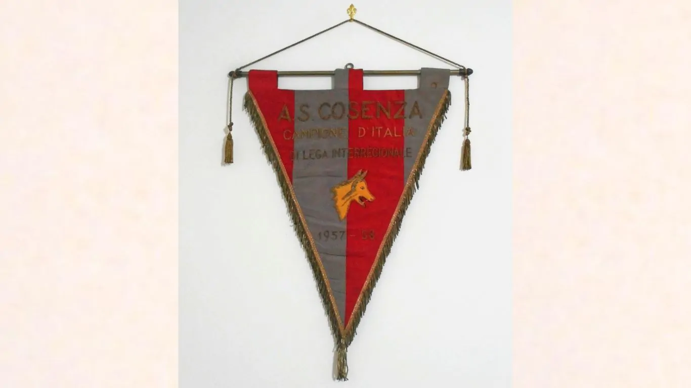 Il Cosenza nei suoi gagliardetti ha sempre riportato i colori rosso e blu ed il lupo della Sila disegnato in varie versioni.