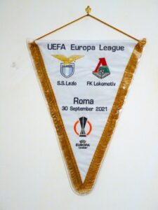 Per le competizioni internazionali la Lazio da alcuni anni utilizza una versione dal gagliardetto usato in campionato. La differenza, tuttavia, è che, oltre all’aquila laziale, compare anche lo stemma della squadra avversaria.