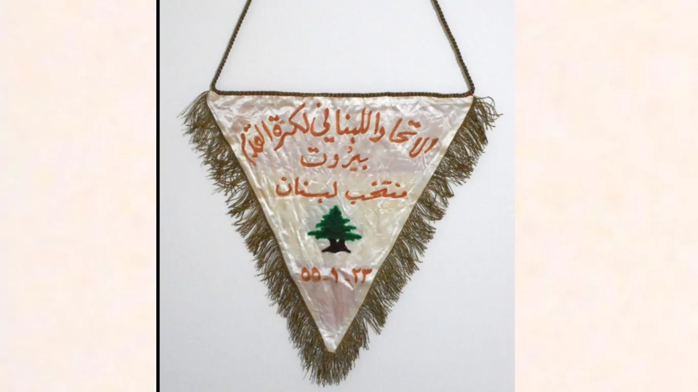 Troppo spesso recentemente il Libano è balzato agli onori della cronaca per morti e devastazioni. Oggi, senz’altro con un tema meno pesante, affrontiamo il tema gagliardetti della squadra nazionale libanese. Lo facciamo con un esemplare relativo all’amichevole tra Bulgaria e Libano che si disputò il 23 gennaio 1955. Questo gagliardetto sorprende per la cura dei dettagli, tra cui fa spicco la bella frangia con fili metallici. Per la forma anomala del triangolo quasi tronco nel vertice basso nonché per il variare delle tipologia di ricamo. Un’altra cosa è il ricamo del cedro al centro che sembra quasi una porzione di albero. Non sembrerebbe, inoltre, essere un gagliardetto di settanta anni fa e soprattutto una rarità tra analoghi gagliardetti che il Libano utilizzò successivamente, per la maggior parte realizzati in formato ridotto e serigrafati.