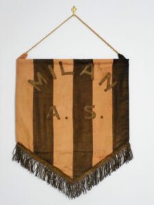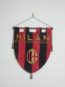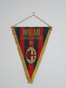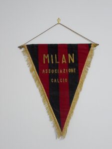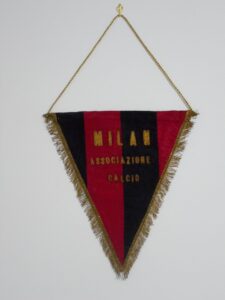 Negli anni Sessanta e nei primi anni Settanta, si ritorna ad utilizzare gagliardetti a strisce verticali rossonere, realizzati in differenti versioni e con ricamo a mano della denominazione societaria.