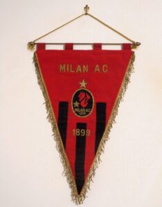“Saremo una squadra di diavoli. I nostri colori saranno il rosso come il fuoco e il nero come la paura che incuteremo agli avversari” così diceva Herbert Kilpin, padre fondatore del Milan, alla nascita della squadra. Tali colori compaiono nelle insegne dei rossoneri insieme allo stemma storico della città di Milano, retaggio del vessillo del Ducato di Milano con la croce rossa di S. Giorgio. Negli anni Trenta i gagliardetti, con la denominazione Milan F.C. e A.S. Milan, erano realizzati con strisce verticali rossonere.