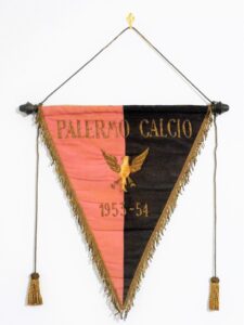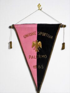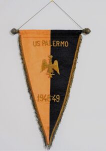 Il 1° novembre 1900, grazie all’iniziativa del Cavaliere Ignazio Majo Pagano nasce l’Anglo Palermitan Athletic and Foot – Ball Club, società antesignana dell’attuale Palermo. Nel 1907, invece, tale sodalizio cambia denominazione in Palermo Foot Ball Club e assume i colori rosa e nero che ne hanno caratterizzato le gesta sportive negli anni successivi. In merito ai gagliardetti, nella stagione 1948 1949 presentavano un’aquila dorata simbolo della città di Palermo.