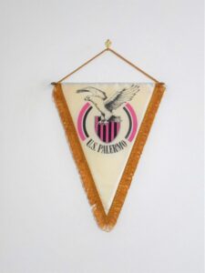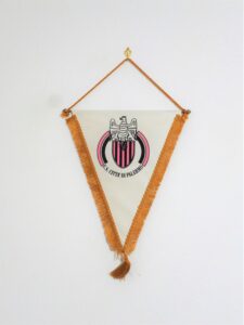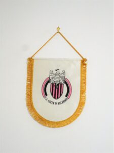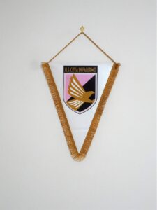 Nella stagione 1953 1954 i gagliardetti con la denominazione Palermo Calcio riportano sempre lo stemma con aquila così come quelli realizzati nel 1965. Nel 1979, invece, l’innovazione sui gagliardetti è portata da un nuovo stemma che ritrae la testa di un’aquila all’interno di un rombo di colore verde.
