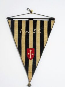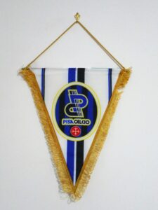 La nascita del Pisa risale al 1919 e la storia dei nerazzurri è caratterizzata da sette presenze nel campionato di serie A, oltre a trentaquattro partecipazioni ai campionati di serie B. Inoltre, il suo albo d’oro annovera la vittoria della Coppa Italia Serie C nel 1999 – 2000 e due Mitropa Cup. Negli anni Trenta i gagliardetti pisani riportavano la denominazione Unione Sportiva Pisa con colori nerazzurri e fascio littorio ricamato nel centro.