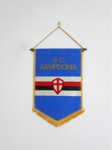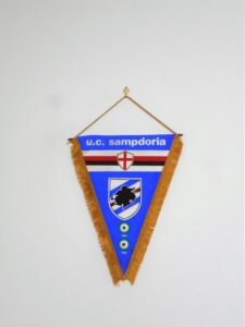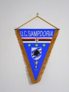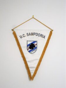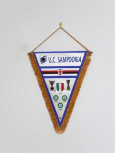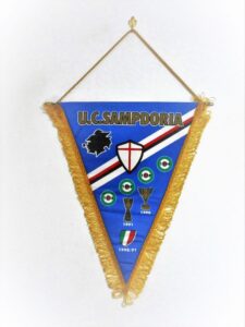 A seguire, negli anni Novanta, la Sampdoria realizzò dei gagliardetti in blu e bianco. Su di essi, i doriano riportano i simboli dei trofei conquistati.