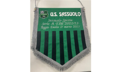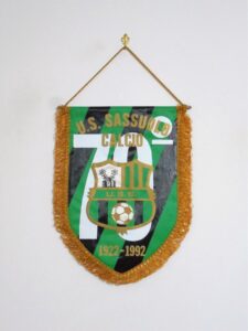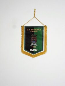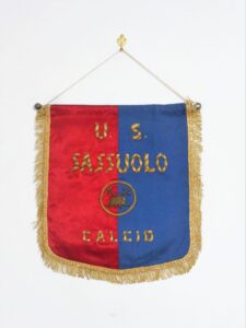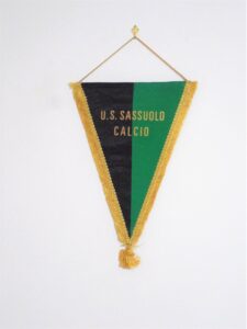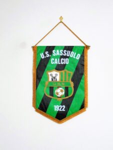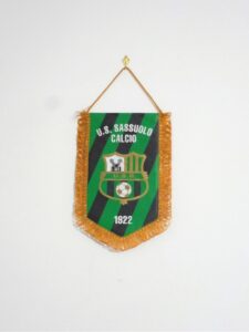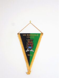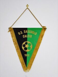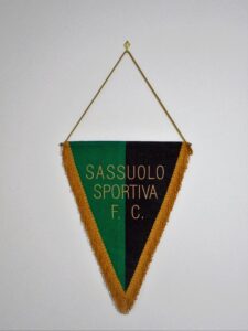 Tale stemma è tutt’oggi presente sui gagliardetti del Sassuolo. Splendido, infine, il gagliardetto realizzato per il centenario nel 2020 con relativo logo commemorativo che ha preceduto un’ulteriore versione frutto di grafica rivisitata a riprendere le strisce verticali nero verdi riportate sulle maglie.