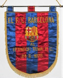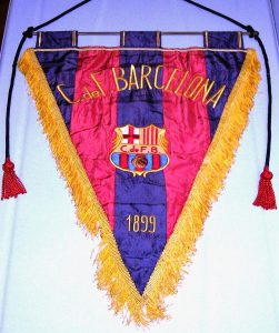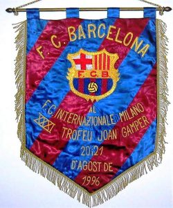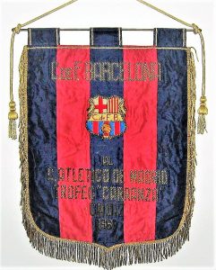 Nei gagliardetti, invece, si fondono le tradizioni della squadra catalana attraverso i colori ed il suo storico simbolo. Di seguito una piccola rassegna che ripercorre settantadue anni del Barca, dal 1931 al 2003 attraverso i suoi labari.