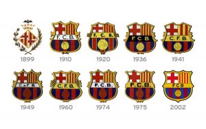 L’evoluzione degli stemmi dei catalani si caratterizza anche per due curiosi aneddoti. Il primo risale al 1910 quando Joan Gamper propose ai soci del club di dotare la squadra con uno stemma proprio. Fu così deciso di indire un concorso pubblico che venne aggiudicato al bozzetto presentato da un giocatore del Barca, Carles Comamala, che presentò un simbolo costituito da uno scudo arrotondato suddiviso in tre sezioni. Quella superiori, bipartita, presentava la croce di S. Giorgio e la bandiera della Catalogna. Al centro, invece, una fascia su cui era riportato l’acronimo del club (F.C.B.), mentre nella terza sezione trovava posto una palatura in azzurro e granata con il disegno centrale di un pallone. Esiste anche una versione secondo la quale lo stemma fu opera dello stesso Gamper che nel disegnarlo cercò di rifarsi a similari insegne utilizzate da squadre elvetiche. Questo stemma, sebbene non totalmente condiviso dalla dirigenza (uno dei soci co-fondatori, infatti, ribattezzò tale insegna, in segno di disapprovazione, la “pentola”), è passato, negli anni, attraverso piccole varianti grafiche e nelle tonalità e nella versione attuale ha sembianze similari allo stemma originario. L’altro aneddoto ha ben poco a che fare con lo sport. Correva, infatti, il 1941 ed il regime del “Generalissimo” Franco dispose due modifiche allo stemma del club. La prima, quella forse più semplice (ma è un eufemismo) da digerire, quella della “conversione” dell’acronimo del club dall’anglofono Football Club Barcellona (FCB) al più ispanico C.F.B. poiché la denominazione originaria della squadra venne tradotta in spagnolo. La seconda, invece, fu un immaginario schiaffo all’identità catalana. Francisco Franco dispose, infatti, che le quattro colonne rosse in campo giallo, rappresentative della Catalogna, fossero ridotte da quattro a due. Motivo? Il tradizionale vessillo doveva essere attenuato nei colori quasi a voler sopprimere, attraverso la sua massima insegna, l’identità di un intero popolo. Soltanto nel 1974 il Barcellona si riappropriò del simbolo originario e successivamente, negli anni duemila, un designer semplificò lo stemma con ulteriori lievi modifiche (furono ad esempio eliminati i puntini tra l’acronimo FCB) da cui scaturì lo stemma ancora utilizzato dalla squadra che ha passato indenne anche la tentata innovazione del 2018, quando sembrava decisa l’eliminazione dell’acronimo FCB dal logo.