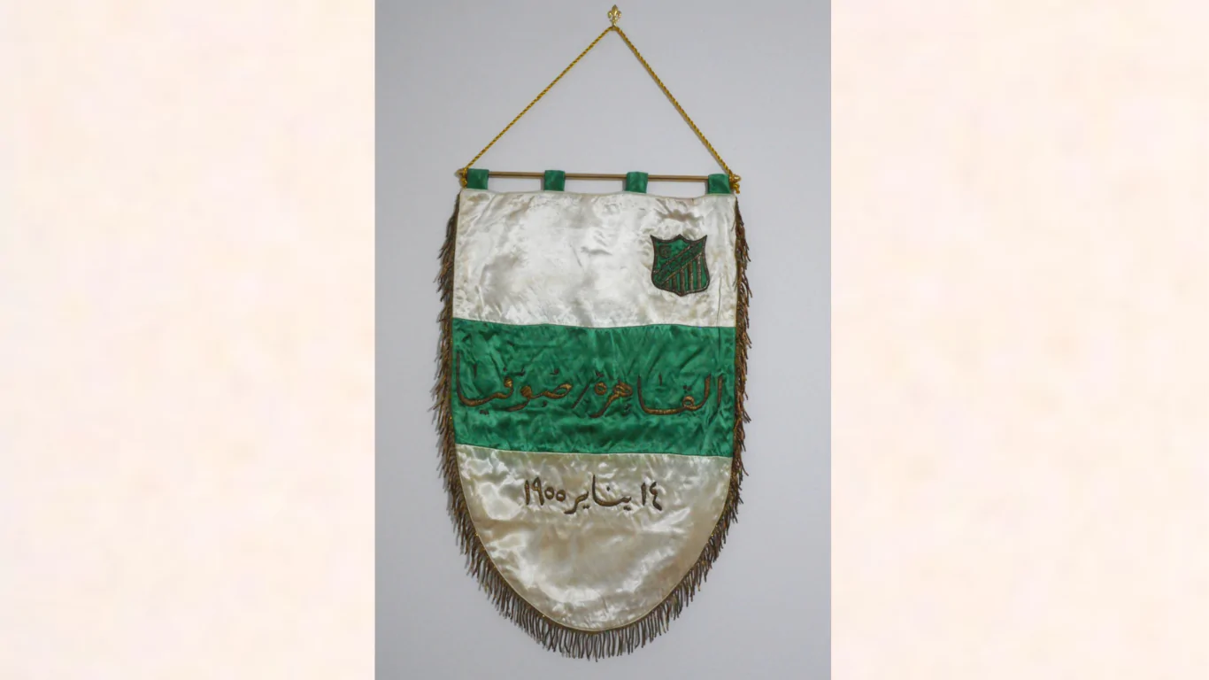 L’esemplare odierno è un gagliardetto davvero significativo innanzitutto perché abbastanza lontano dagli standard qualitativi dell’area africana non molto incline all’utilizzo di esemplari ricamati. Anche il formato e le misure davvero generose sono un inedito insieme al dettaglio del ricamo in canottiglia che, verosimilmente, approdò in Egitto da una produzione europea. La storia che testimonia questo esemplare ci porta esattamente a settant’anni fa nel gennaio del 1955. In quella circostanza gli egiziani disputarono un’amichevole contro la Bulgaria.