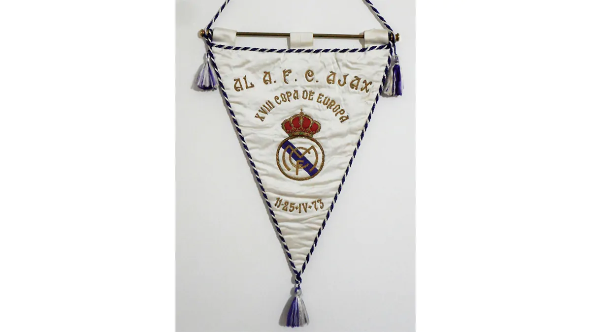 Gagliardetti che segnano la storia del calcio. Oggi è la volta del “Profeta del gol” Johan Cruyff e della favolosa epopea dei lancieri dell’Ajax. L’occasione è il gagliardetto che Cruyff ricevette dal capitano del Real Madrid prima di uno dei due incontri valevoli per la semifinale della Coppa dei Campioni che terminò con la terza vittoria consecutiva dell’Ajax. Il gagliardetto madridista è un bellissimo esemplare, in eccellente stato di conservazione, con lo stile caratteristico dei gagliardetti che il Real Madrid utilizzava praticamente dagli anni Sessanta nella circostanza delle competizioni continentali.
