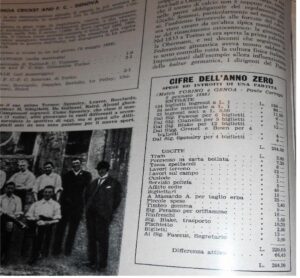 Questa ipotesi si riferisce al possibile utilizzo dei gagliardetti per la partita e l’idea prende corpo da un documento presentato nella raccolta sopra menzionata dedicata al calcio in Italia. Tra le immagini infatti compare una interessante sintesi del bilancio (entrate e uscite) genoano per la partita. Nella voce uscite, verso il fondo, si legge “…Sig. Perasso per orifiamme 18 Lire…”. Un’orifiamma è uno stendardo ed appare evidente che furono utilizzati in quella partita. Il dubbio potrebbe essere relativo ad altra tipologia di materiale come le bandiere visibili nell’immagine di sopra issate sulla tribuna dello Stadio di Ponte Carrega, la prima “casa” del Genoa. Anche se non confermato, da appassionato e ricercatore di gagliardetti e delle loro storie mi piace immaginare che quelle orifiamme fossero proprio gagliardetti o labari realizzati per l’occasione. Tutto questo potrebbe, ove confermato, essere una sorta di “anno zero” per l’utilizzo dei gagliardetti calcistici in Italia.