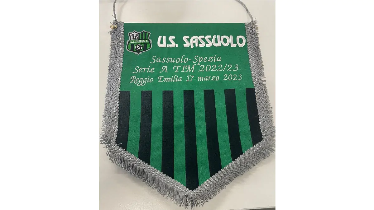 Si deve dire che a Sassuolo non mancano affatto le idee originali ed apprezzabili dal punto di vista collezionistico. Una delle società più interessanti, secondo il mio punto di vista, in fatto di dettagli dei gagliardetti. Basti solo pensare che nel corso del ultimi anni la Società ha fatto realizzare tre diverse tipologie di gagliardetti. La prima in occasione del centenario della squadra con un logo speciale per la ricorrenza dopodichè un ulteriore che, per la prima volta rispetto ai precedenti gagliardetti, riporta il tricolore sul retro ed infine l’attuale senz’altro di bella fattura e grafica.