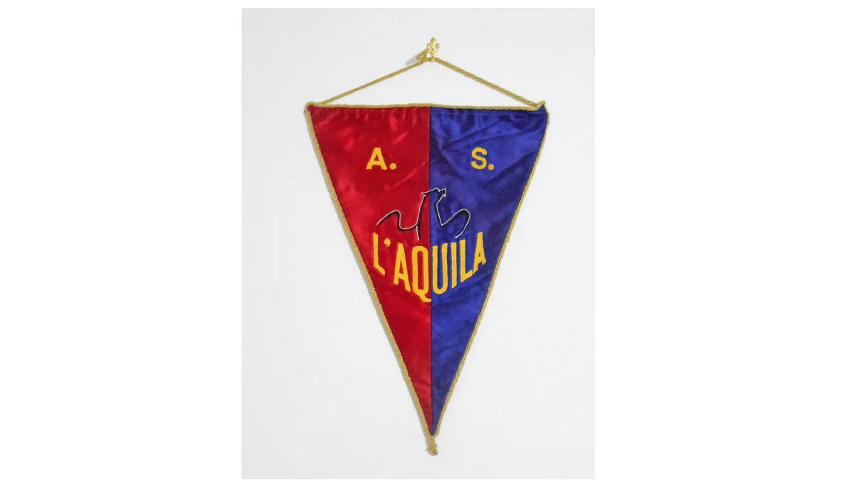 Dalla metà degli anni Novanta vengono realizzati gagliardetti bianchi con il disegno di un’aquila in volo inserita in uno scudo sannitico. Dalla fine degli anni Novanta nei gagliardetti compare uno scudo inquartato rossoblù con il profilo dei monti locali e un’aquila in volo sopra un cartiglio riportante la scritta L’Aquila Calcio.