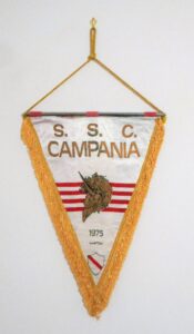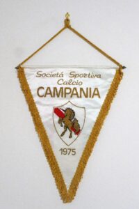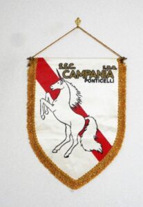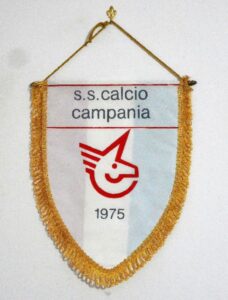 Negli anni settanta i gagliardetti del Campania presentavano fondo bianco e banda rossa trasversale. Su di essi veniva riportato lo stemma dell’unicorno, la denominazione della squadra nonché l’iscrizione Ponticelli. Negli anni ottanta sui gagliardetti si presenta dapprima uno stemma a scudo con unicorno che, a seguire, viene raffigurato in un disegno che ne ritrae solo la testa sovrapposta a quattro linee orizzontali rosse e con, retrostante, lo stemma a scudo con banda trasversale rossa. Un ulteriore versione si aggiunse, infine, alla metà degli anni ottanta, quando la società utilizzò gagliardetti riportanti un unicorno stilizzato contenuto tra la denominazione e l’anno di fondazione della squadra.