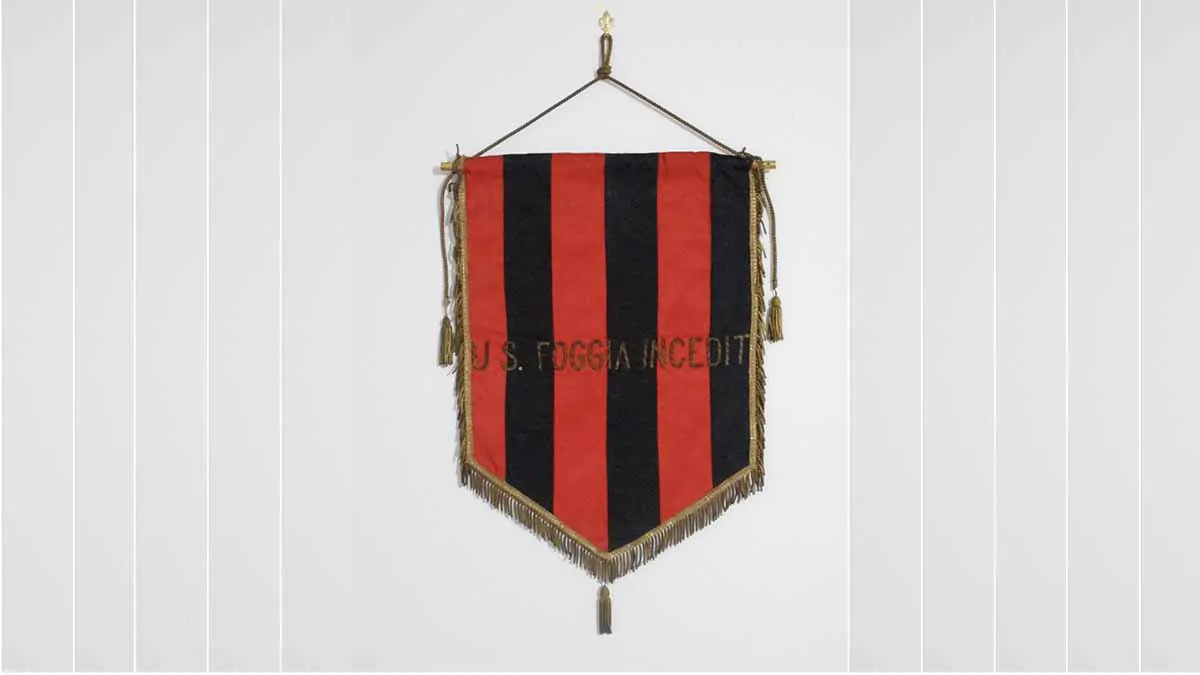 La storia dei “satanelli” inizia nel 1920 quando dalla fusione tra alcune compagine locali nacque lo Sporting Club Foggia con colori sociali rosso e nero che furono adottati dal 1922 su decisione della proprietà dell’epoca simpatizzante del Milan. In merito ai gagliardetti, nel 1958, a seguito della fusione con il Gruppo Sportivo Incedit, società appartenente ad un’azienda locale, vengono realizzati gagliardetti a strisce verticali rosso e nere con denominazione Foggia Incedit.