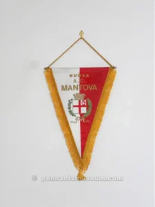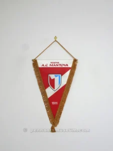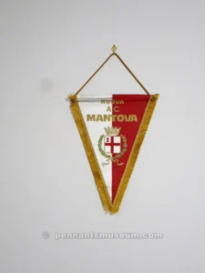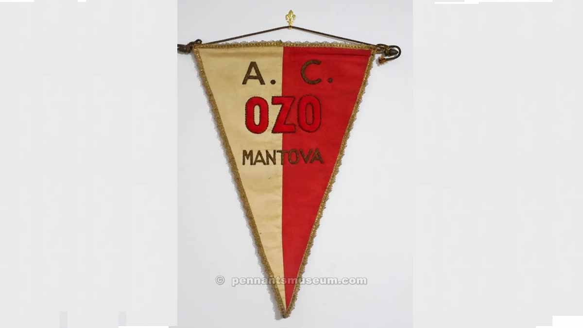 Tali gagliardetti erano ripartiti in bianco rosso, privi dello stemma e con il ricamo della denominazione societaria. Ad essi si affiancarono esemplari similari, realizzati in versione stampata e con il logo dell’OZO, in uso fino alla stagione 1960 1961. Dal 1961, terminato il connubio con l’OZO, la società riprende la denominazione A.C. Mantova e i gagliardetti sono realizzati con uno stemma costituito da un cerchio partito con lo stemma cittadino da un lato con o senza l’effige del poeta Virgilio e una semicirconferenza azzurra dall’altro, a ricordare l’originale colorazione delle maglie.