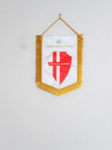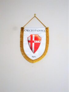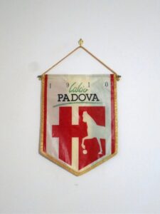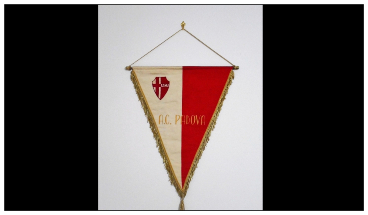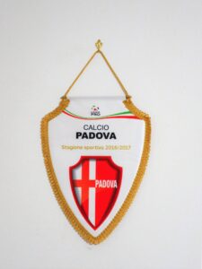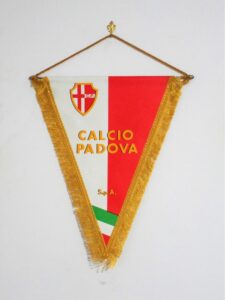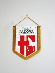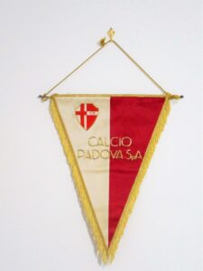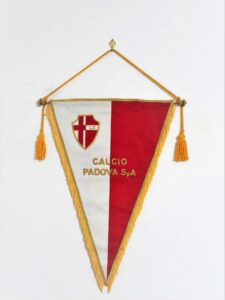 Dal punto di vista sportivo il Padova ha militato in serie A per sedici stagioni e nell’albo d’oro è annoverata la Coppa Italia Semiprofessionisti vinta nella stagione 1979 1980. Nel periodo tra gli anni Sessanta e settanta i gagliardetti dei biancorossi erano similari. Presentavano una partitura bianco e rossa e uno scudo crociato anch’esso partito che presentava l’acronimo A.C.P. negli anni Sessanta e quello C.P. negli anni Settanta.