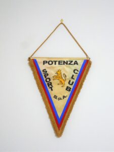 Le origini dei rossoblu risalgono al 1920. In quell’anno venne costituita l’antesignana Sport Club Lucano. La squadra raggiunse il periodo di massimo splendore negli anni sessanta con la partecipazione a cinque campionati di serie B consecutivi. Negli anni settanta la Società utilizza almeno un paio di gagliardetti di differente tipologia. Il primo, in rosso e blu, riporta lo stemma cittadino con il leone rampante mentre l’altro, in bianco, ha soltanto il leone al centro. Negli anni ottanta continuano ad essere presenti lo stemma cittadino oltre ai colori rosso e blu. I rossoblu fallirono nel 1994. L’eredità calcistica venne acquisita dalla Polisportiva Banca Mediterranea Invicta. A seguire diventò U.C. Potenza con ritorno agli stemmi tradizionali. Dapprima in versione bianca e poi, dal 1997, nei colori rosso e blu.